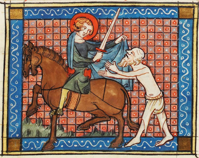 Saint Martin partageant son manteau, enluminure réalisée par Richard de Montbaston vers 1348.