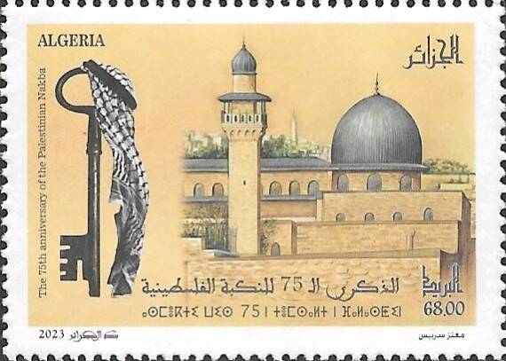 Émis le 24 mai 2023, ce timbre-poste algérien rend hommage au 75e anniversaire de la Nakba :